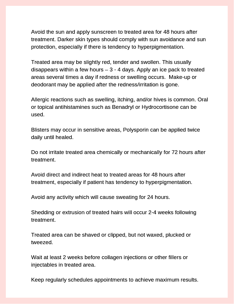 Due to the fact that lasers are attracted to pigment, they work best on hair that’s brunette or darker. However, a person with darker skin will typically need more sessions than someone with a paler skin as there is not as much direct intense heat going into each follicle, the energy is filtered in slower so as not to disturb the pigment in the skin.